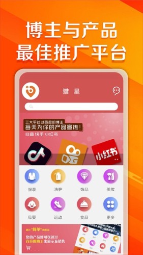 猎星app安卓版下载,一款优质便捷的产品推广宣传任务发布平台,在猎星app用户可以随时发布带货信息,让三大平台网红帮你做产品宣传,有需要就来下载。