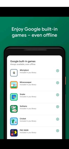 • 内置 Google 游戏:即使离线也能畅玩吃豆人、纸牌接龙、贪吃蛇和飞镖游戏。