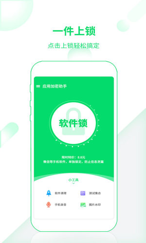 应用加密助手-微信锁是官方推荐的软件加密、微信加密、应用加密的微信隐私保护软件锁,安全稳定、值得信赖的隐私安全管家。轻量、专业的应用锁工具,对微信信息安全实现前“锁”未有的加密保护。