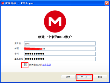 一是次登陆MEGA如没有MEGA帐号,请先注册MEGA帐号