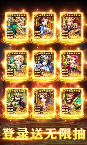 1、新手登录游戏就送无限抽奖,直到你获取到心中最喜欢的那个神级英雄为止,而且还免费送大量的元宝和金币奖励,开局就是超级人民币vip特权了。