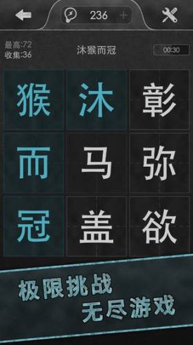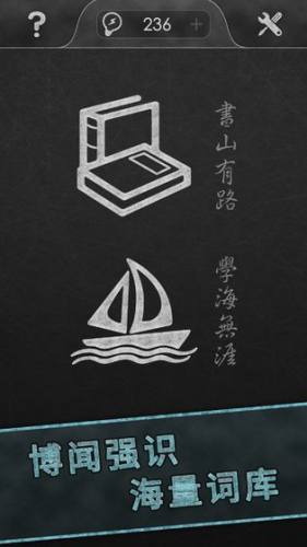 2、两种游戏模式:书山有路为关卡通关模式,循序渐进方能通达人世;学海无涯为无尽游戏模式,检索你的成语词库,带给你紧张刺激的游戏体验。