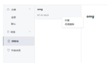 1、如果你在使用过程中出现之前编辑的文字不小心删除了,其实用户完全可以在回收站中进行恢复,在左边的栏目中点击“回收站”选项,选中想要恢复的章节,右键点击其中的“恢复”选项;当然你也可以选择彻底删除,不过删除之后将不可恢复,如下图所示: