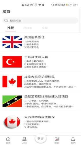 都能在CASA出国app找到。CASA出国app主要包括:资讯、人脉、项目、获客四大功能