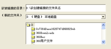1、点击倒三角符号,选择欲被链接的目录,然后将“欲创建链接的文件夹名”手动改成你想创建的名称就行