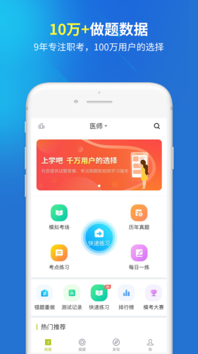 上学吧医院三基考试题库新增搜题功能,医院三基考试题库中的疑问一搜便知,更支持语音和拍照搜题。