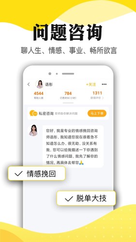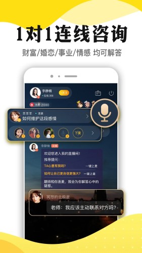 通过语音直播、1对1咨询、快速连线等不同的方式,陪伴用户度过人生每一次的选择。
