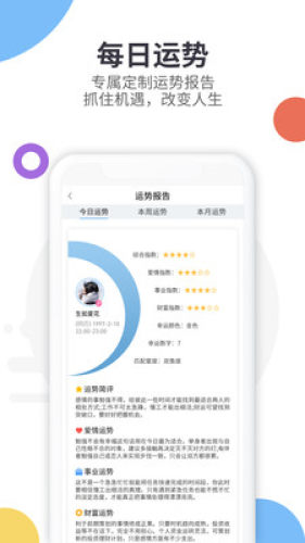 多方面为您解析每日运势,随时随地掌握自己的运势并能时刻做好准备,从容地面对人生。