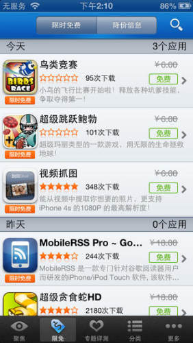 2、实时推送的限免消息,让一切限免都逃不过您的眼睛