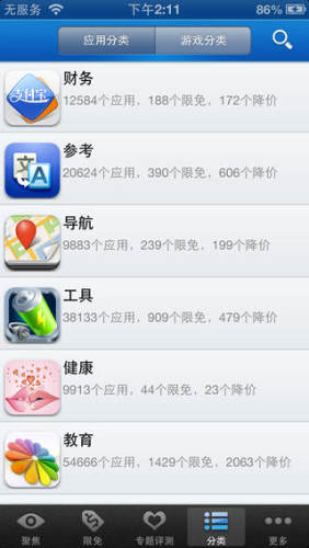 1、覆盖全部App Store 应用,在分类里包含了全部的应用,甚至我们还专门突出了其价格,过日子得学会精打细算