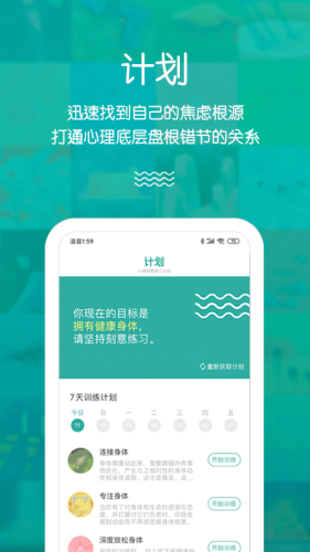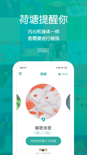 荷塘心理app,荷塘提醒你,内心和身体一样都需要进行锻炼;训练,基于主流心理学理论及心理咨询实践经验而研发;计划,迅速找到自己的焦虑根源,打通心理底层盘根错节的关系。