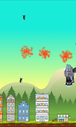 在摩天大厦之间急速飞行,轰炸敌人,抵抗侵略,保卫城市。