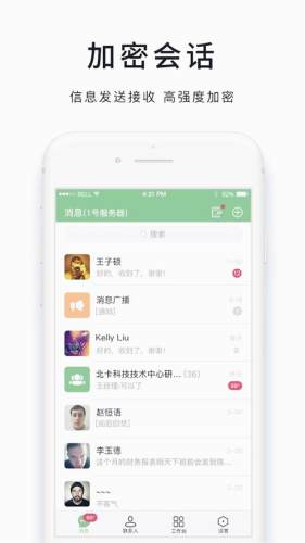 咔信(安全通信)app,适用于企业的内部通讯软件,安全加密,所有信息安全传输,让交流更放心。使用咔信app,企业内部加密会话,安全共享文件资源,让工作沟通更省心。