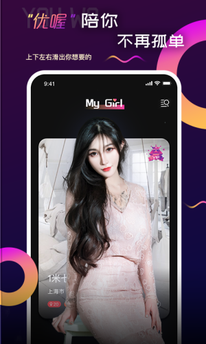 “优喔APP”是一款基于兴趣算法,真实视频直播交友APP。一屏只显示一位展示当前用户。“优喔APP”采用全滑动方式,上下左右滑,滑出的都是你想要的。