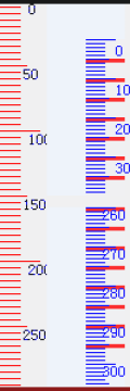 1.红色尺是原大小,蓝色尺是放大三倍的