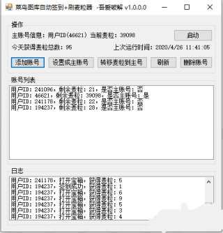 截图如下:(这个是演示用4个小号,1天可以刷95个麦粒,当然你也可以注册更多小号)