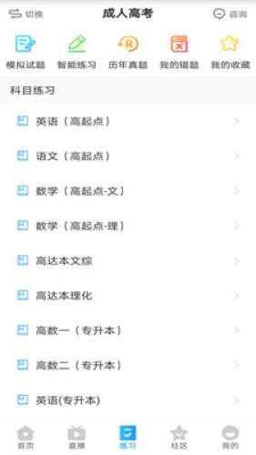4:自我练习模块:提供各行各类大量考试练习习题,所有人均可在线答题,并提供答题解析功能。
