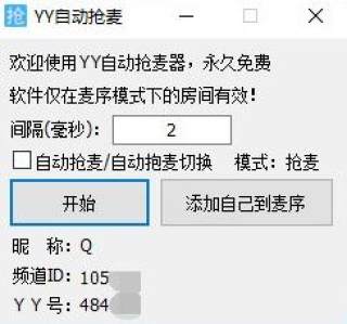 YY自动抢麦器是一款为yy语音准备的辅助工具。这款YY抢麦器可以帮助用户非常迅速的抢麦、抱麦,让用户第一时间就可以快速发言,喜欢的用户赶快来下载体验这款神奇的辅助工具吧!