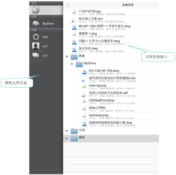 实现对微软SkyDrive的支持,可访问SkyDrive所有文档支持,可以将文件和图纸下载到本地。