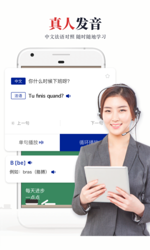 与法语母语者发音进行对比,无限次数,直到发音满意为止,帮助你快速掌握纯正的发音,解决开口难的难题。