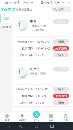 1、健康管理:主要针对慢性病患者及病后、术后康复人群,平台会以线上线下结合的方式,由专业的医师对用户实施一对一的跟踪服务,实现每个用户、每个家庭都能拥有属于自己的家庭医生