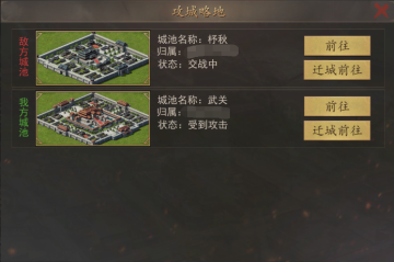 玩家每次派出部队攻打城池需消耗1点行军令,玩家在对城池发动攻击后,城池进入交战状态,同盟内玩家会接收到相关提示(如下图)。