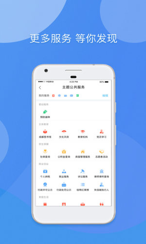 为用户提供婴幼服务、文体教育、民生保障、就业创业、家庭生活、交通旅游、健康医疗、环境气象等全方位服务。一个超级App,贯穿用户“衣食住行、生老病死、安居乐业“等全生命周期服务。网享天府,信手服务!
