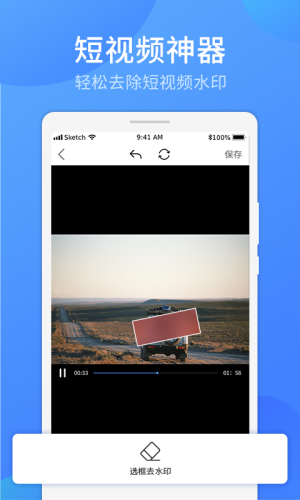 视频去水印:是一款简单易用的去水印、加水印软件,可以实现一键去除视频水印、图片水印,视频加水印,图片加水印等,一键提取多平台无水印视频,简单好用的视频去水印工具;视频去水印!给用户最愉悦的体验!