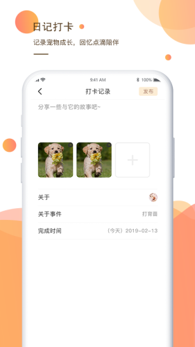 1、【宠物档案】建立你的萌宠专属档案,记录并展示它的生活点滴,帮助你的萌宠更好的生活。