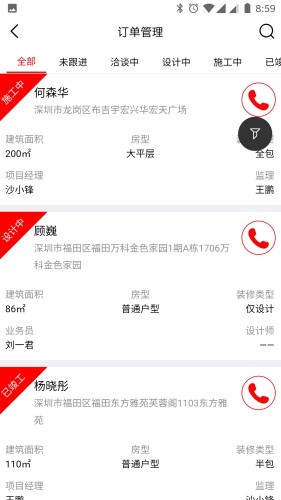 2)订单管理:打通市场、设计、施工、质保全业务流程,随时随地掌握客户/工地的最新进度,规范管理流程,有效降低管理成本;