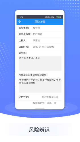 系统实现对学校基本情况的查看,可进行双重预防体系要求下的风险辨识管控、隐患巡查治理的数据管理与应用,兼顾卫生健康、危险实时监测和安全应急等信息管理功能。