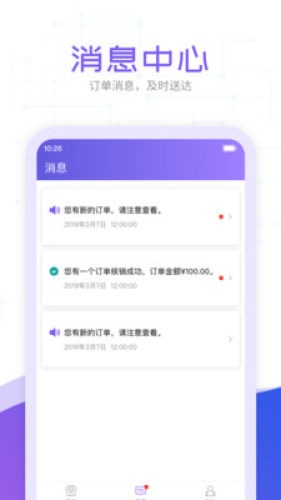 ——订单核销和钱款到账消息提醒;