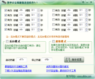 简单百宝箱键盘连按软件支持十个按键连按,能够自设按键间隔时间,拥有后台模式和超级模式,支持N多火爆游戏,玩DNF发连招效果甚佳。