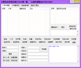 小暮色QQ空间全能王2014是暮色渐蓝制作的一款QQ空间代刷软件,支持刷空间留言、日志、说说,软件比较强大,最强大的功能是可以实时监控QQ空间好友动态,一旦发现有好友更新内容,立刻自动赞+评论,内容可自由设置。