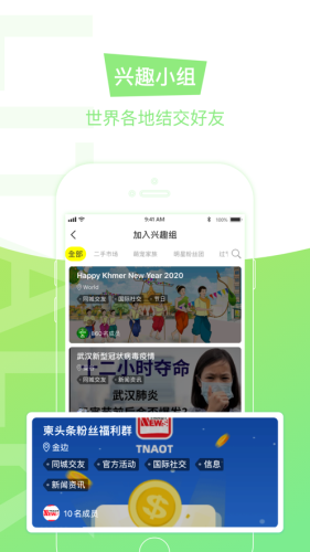 -公开兴趣群组:与兴趣相同的陌生人一起嗨聊,认识更多兴趣相同的新朋友;