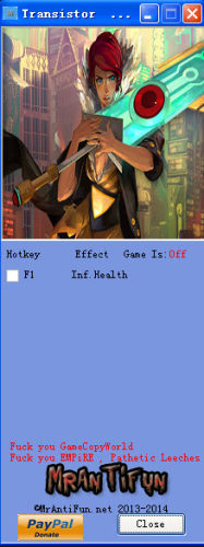 晶体管修改器是该款由Supergiant Games开发的ARPG游戏——《晶体管》的作弊器。该款晶体管辅助工具简单小巧、功能实用,能进行无限生命的游戏操作设置修改,让你在游戏中得到不死的能力,更轻松的应对各种难度的任务。