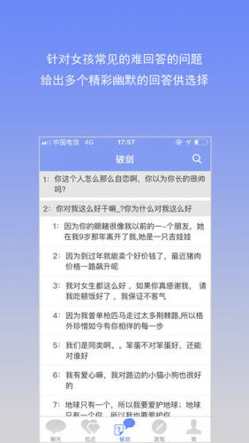 2.按照分类收集了大量最常见的女孩的刁难问题,并针对性的给出来幽默风趣精彩的回答