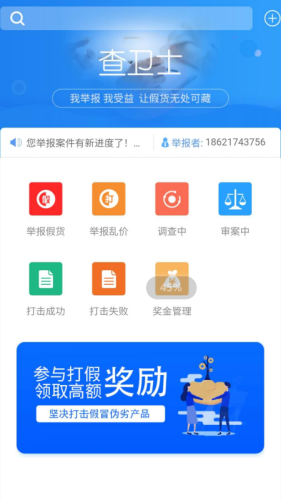 查卫士app,这是一个知识产权保护服务平台,在这里可以举报假货、举报乱价,您可以将发现的假货信息上传到本平台进行调查,通过审案,打击成功后,将可获得一定的奖金哦!