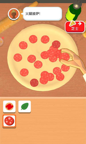 2、快来展示你的厨艺,选择材料,揉面,添加各种食材,让你的披萨更加美味。