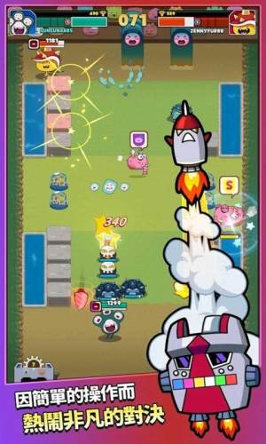 1、不管是小怪兽还是对战背景,都显得十分可爱,而且玩法还十分简单,玩家只需控制小怪兽的移动方向进行射击即可;