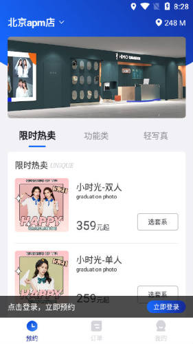 海马体照相馆app,拍照线上预约平台。用户可以通过平台查看,挑选自己喜欢的拍照样式,在线下单预约,文艺照、仙女照、证件照,应有尽有,快来下载体验吧。