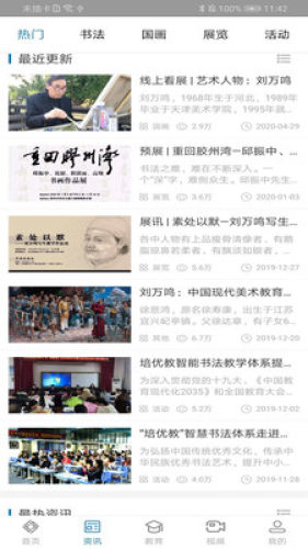 三:视频模块:主要是更新最新的书法和美术展的视频信息。