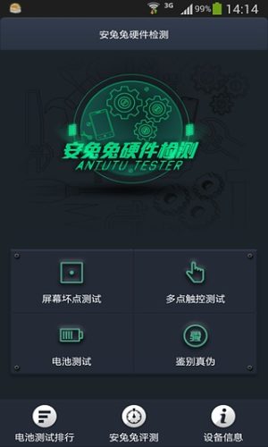 安兔兔硬件检测中的电池电量检测,能测试你手机、平板使用电池过程中是否平稳及正常,而多点触摸检测可以让你在挑选手机时,确保手机、平板达到你所喜爱的游戏软件的要求;你能直观看到软件内所有的系统信息。