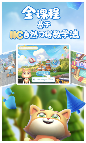 全拟真3D场景,全英文沉浸式学习环境,纯正美式发音,与欧标同步的英语教学体系。