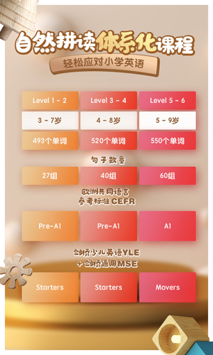 让孩子坐得住,学得会,不易忘,掌握自然拼读规律,拥有一定的词汇量,能够实现简单英文绘本的自主阅读。
