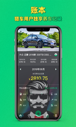 猎车长设置了养车账本功能,有车以后的每一段路程都是一张张的油票堆积史,如果我们勤于记录、细心总结,不难从以往的记录中筛选出极具性价比的服务。