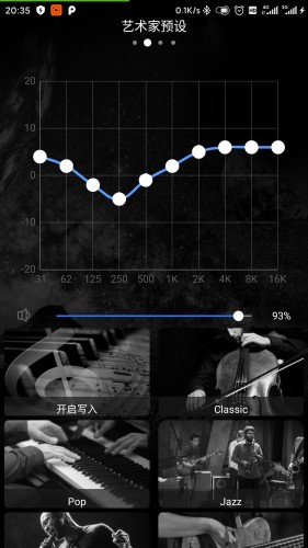 一款均衡器和智能听感检测App,蓝牙连接成功后可通过此App实现选择或调节艺术家EQ预设(包含Classic/Jazz./Rock/Pop,/Folk 五种模式 ),智能听感检测,智能听感预设,此App可按个人喜好而定,能够满足不同的个人听音喜好。