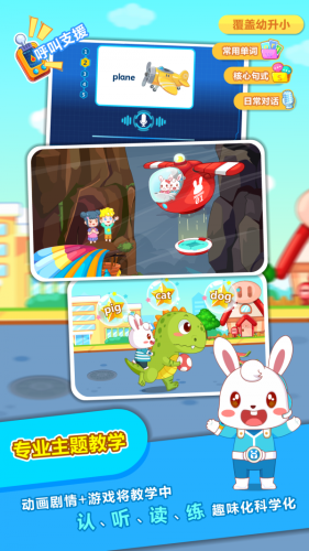 系统学习高频词汇、短语和常用句式,让孩子在趣味十足的救援故事中不知不觉的认识英语,使用英语。