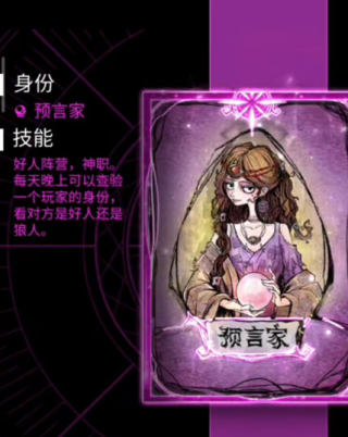 3、先知(简称XZ):属于好人阵营。每晚可以确认一位玩家的真实身份,但是他死了并不代表狼人赢。(注:先知第一晚验人,不要验表演比自己高的玩家,有50%的可能会验不出来;第二晚以后可以随便验)。