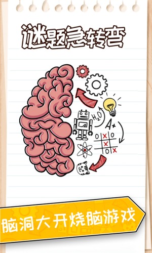 谜题急转弯是一款有独特魅力的休闲烧脑游戏,游戏画面十分简洁,操作方法简单,你只需要答对问题就可以,但是题目都是很费脑子的题目哦,不按常理出牌就对了。